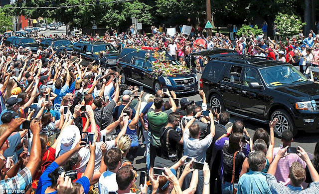 Umati watu 14000 ulisikiliza kwa makini watu wa tabaka na dini tofauti wakimuomboleza mohammed ali kutokana na umahiri wake katika ulingo wa michezo na pia alivyoitunza jamii, huku wakisifu mchango wake katika kuimarisha amani duniani na haki za binadam.